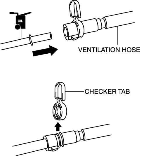 - A checker tab is integrated with the quick release connector for new evaporative hoses and evaporative hoses. Remove the checker tab from the quick release connector after the connector is completely engaged with the evaporative pipe.