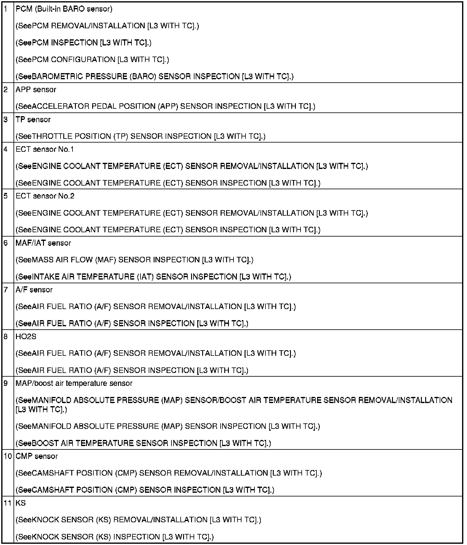 CONTROL SYSTEM COMPONENT LOCATION INDEX [L3 WITH TC]
