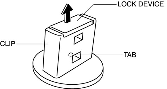 7. Pry off the lock device of the clip while pressing the tab in the position shown in the figure.