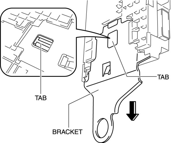 12. While pressing the tab shown in the figure, pull the bracket in the direction of the arrow and remove it.