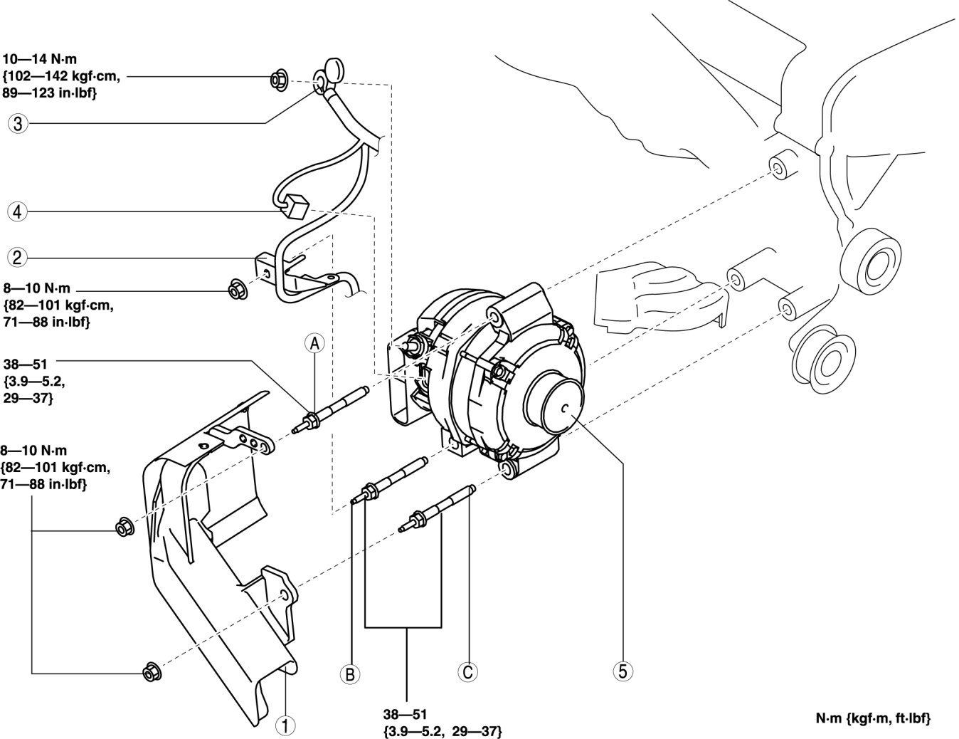 2. Tighten bolt B, C to the specified tightening torque.