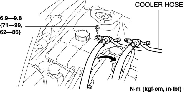 1. Remove the cooler hose bracket bolt and set the cooler hose out of the way before performing the generator removal/installation.