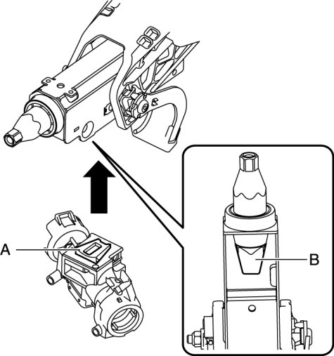 1. Assemble section A of the steering lock to the section B of the steering shaft.