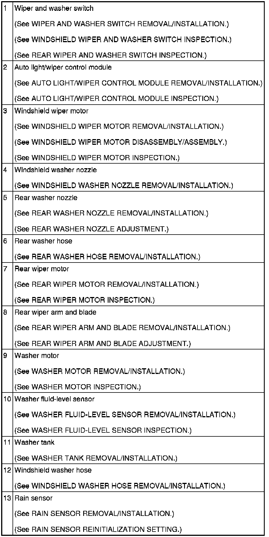 WIPER/WASHER SYSTEM LOCATION INDEX