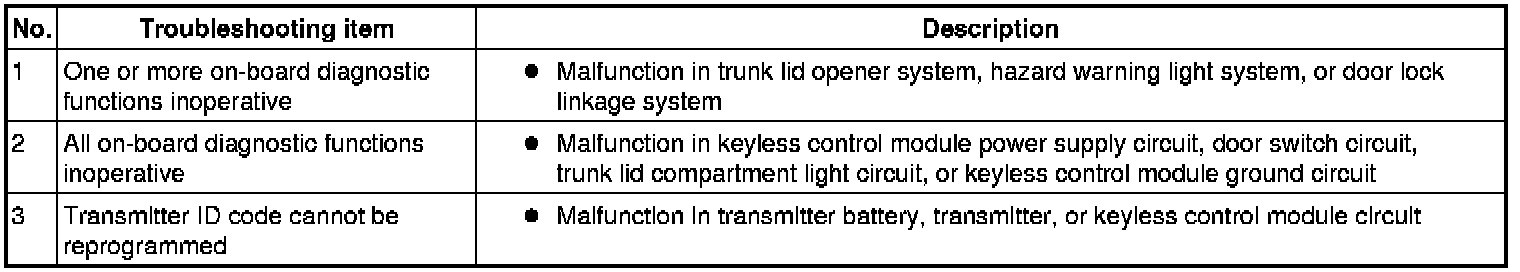 SYMPTOM TROUBLESHOOTING INDEX [KEYLESS ENTRY SYSTEM]