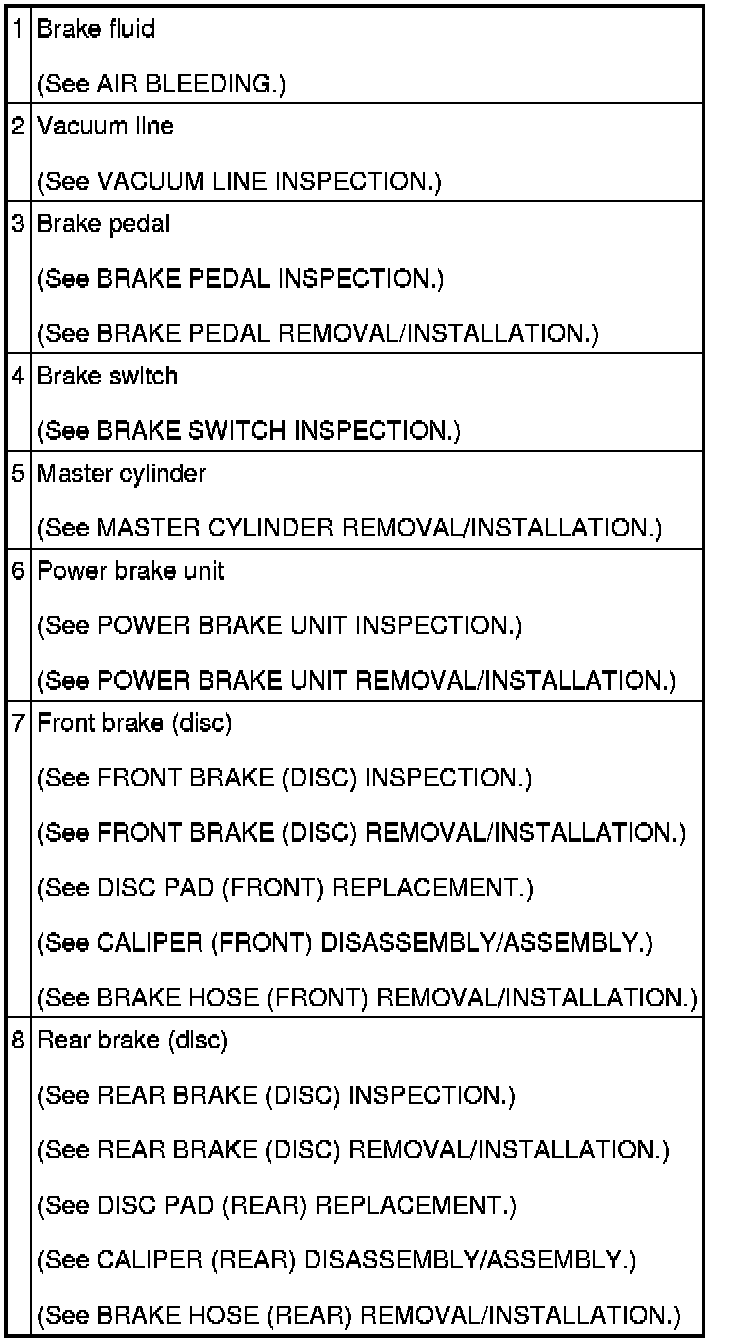 CONVENTIONAL BRAKE SYSTEM LOCATION INDEX