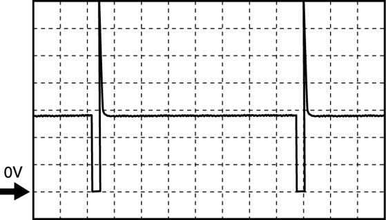 - Oscilloscope setting: 5 V/DIV (Y): 0.4 ms/DIV (X), DC range