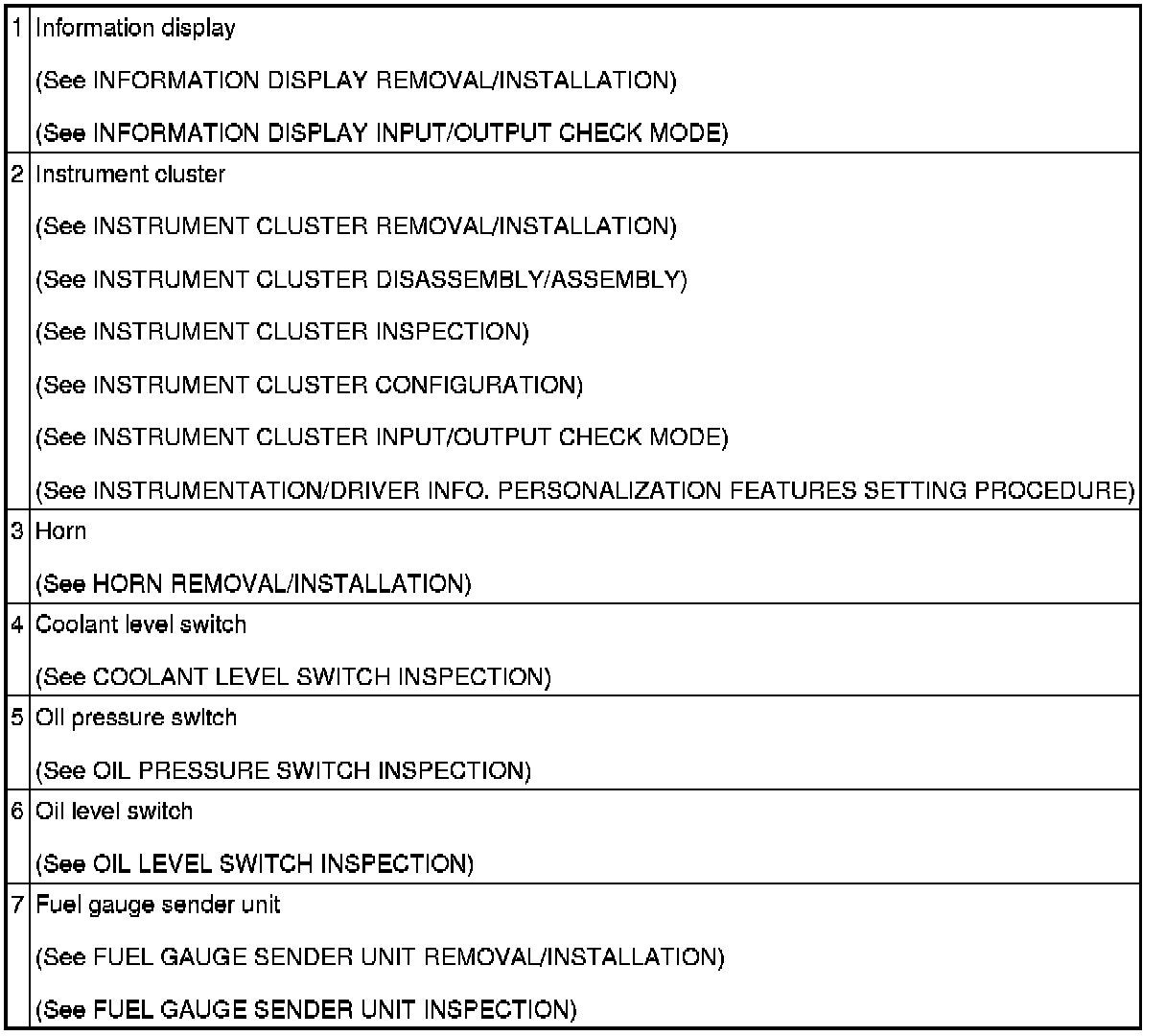 INSTRUMENTATION/DRIVER INFO. LOCATION INDEX