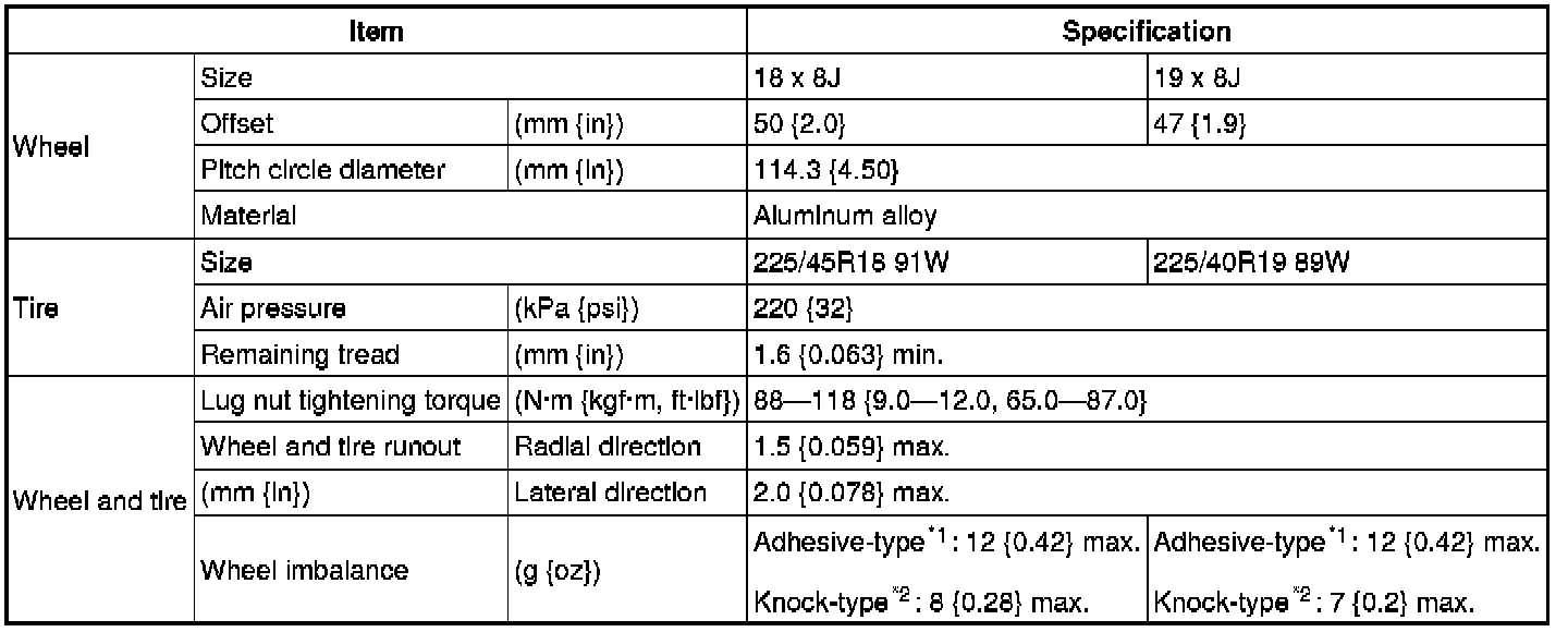 WHEEL AND TIRE SPECIFICATION