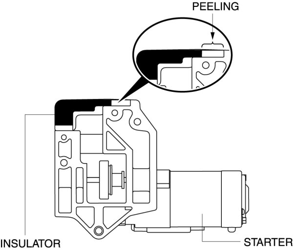- When the battery cables are connected, touching the vehicle body with starter terminal B will generate sparks. This can cause personal injury, fire, and damage to the electrical components. Always disconnect the negative battery cable before performing the following operation.