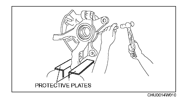 When using a vise, put protective plates in the jaws of the vise to prevent damage to parts.