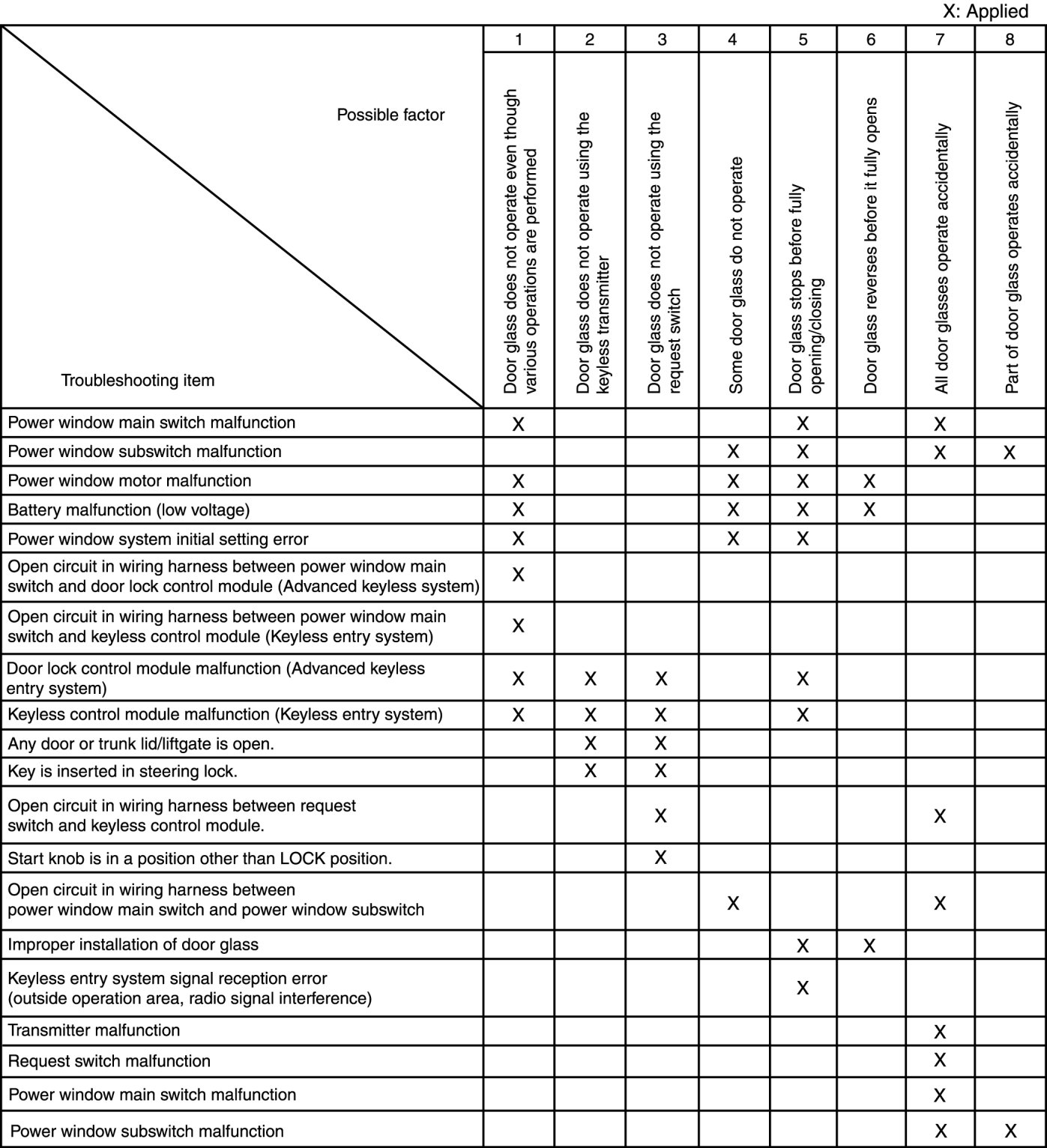 QUICK DIAGNOSTIC CHART [EXTERIOR OPEN/CLOSE FUNCTION]