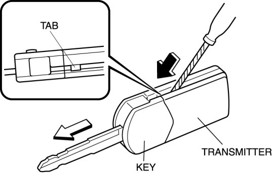 1. Insert a flathead screwdriver into the transmitter notch and remove the key from the transmitter by pressing the tab.