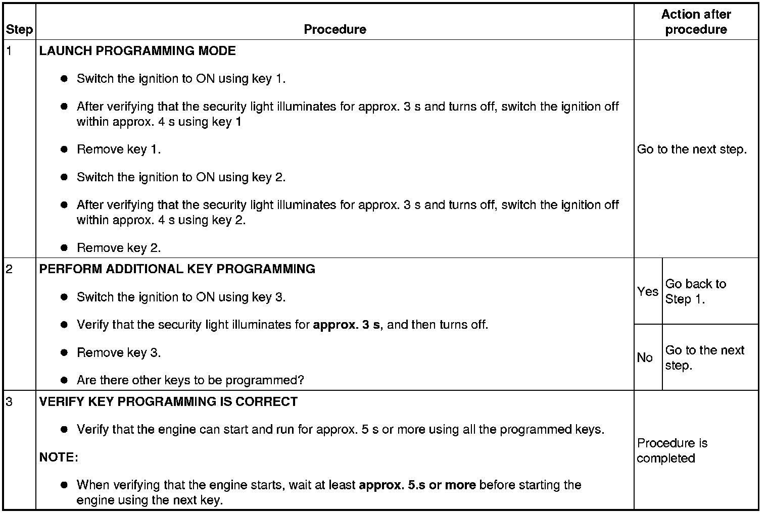 - This procedure is performed for disabling the No.1 Additional Key Programming Procedure (Using Two Valid Keys).
