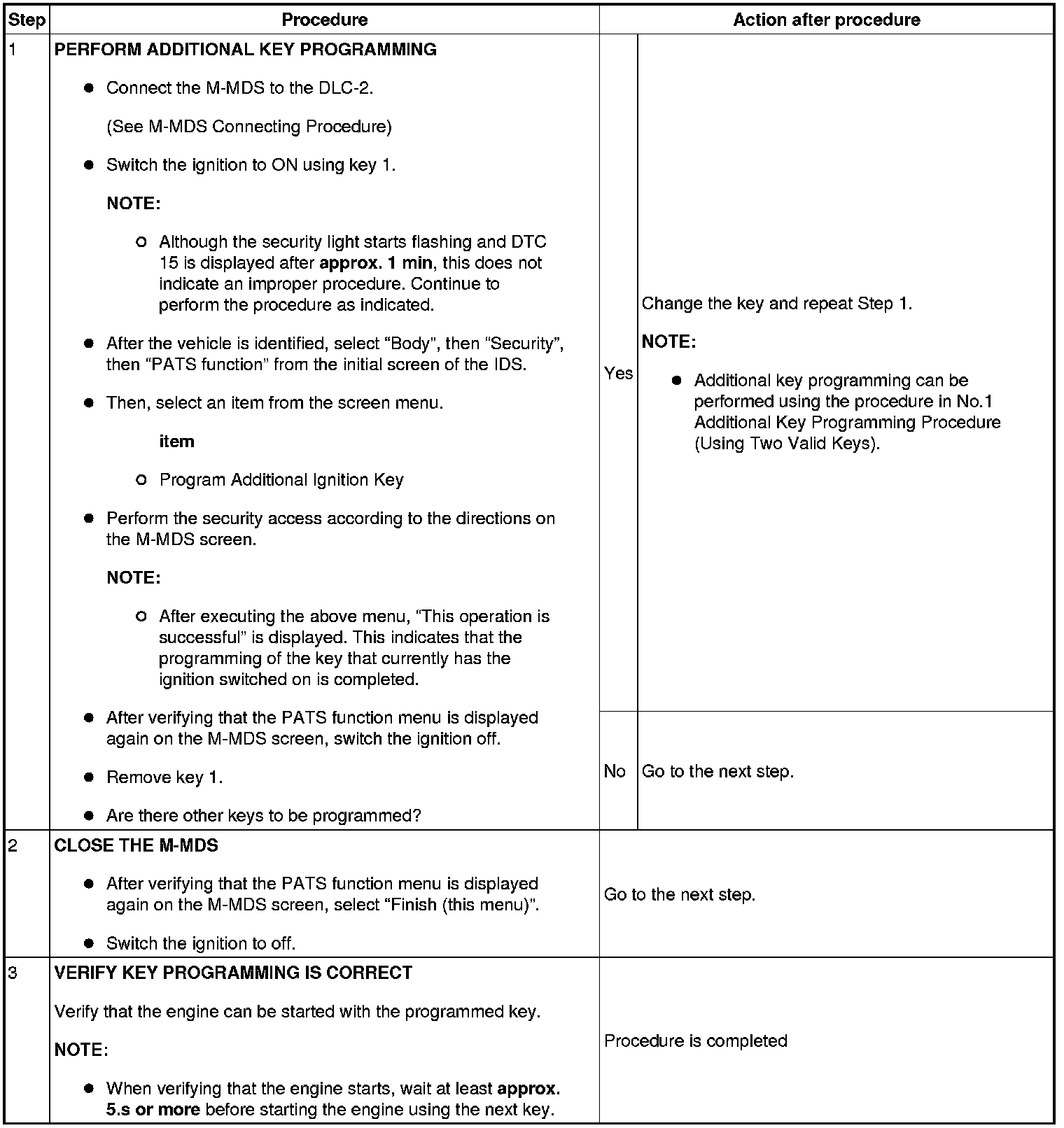 - If a key ID number cannot be programmed and DTC 15 is displayed, the maximum number of programmed keys may have been reached. Verify the number of programmed keys using the M-MDS.