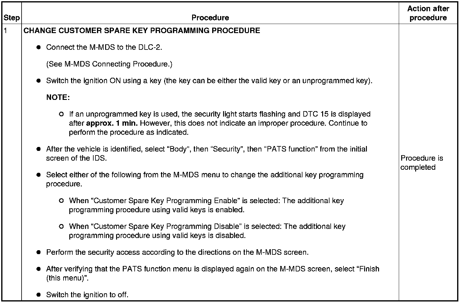 - If "Customer spare key programming disable" is selected, perform additional key programming using the M-MDS.