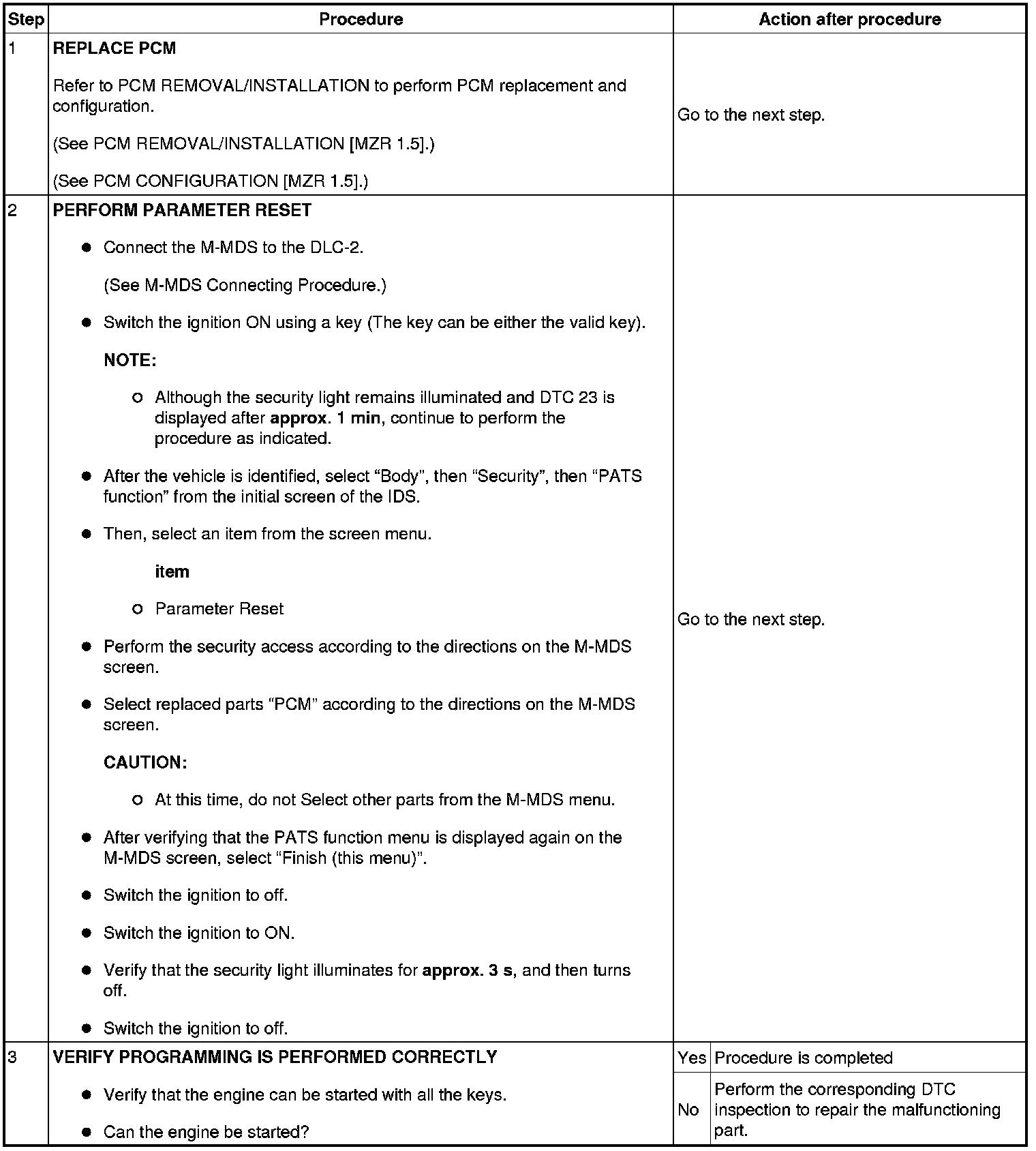 No.4 Programming Procedure Due to PCM Replacement