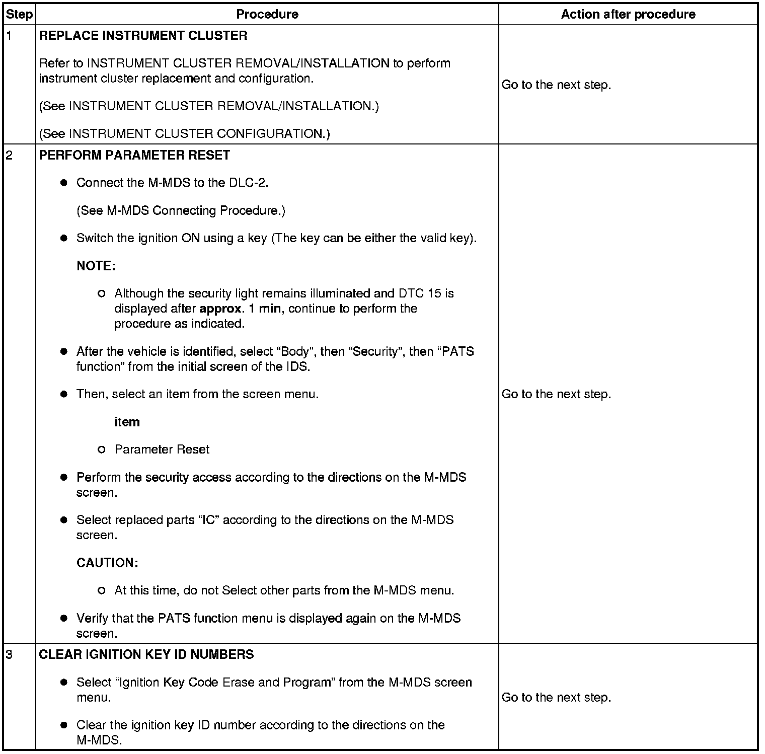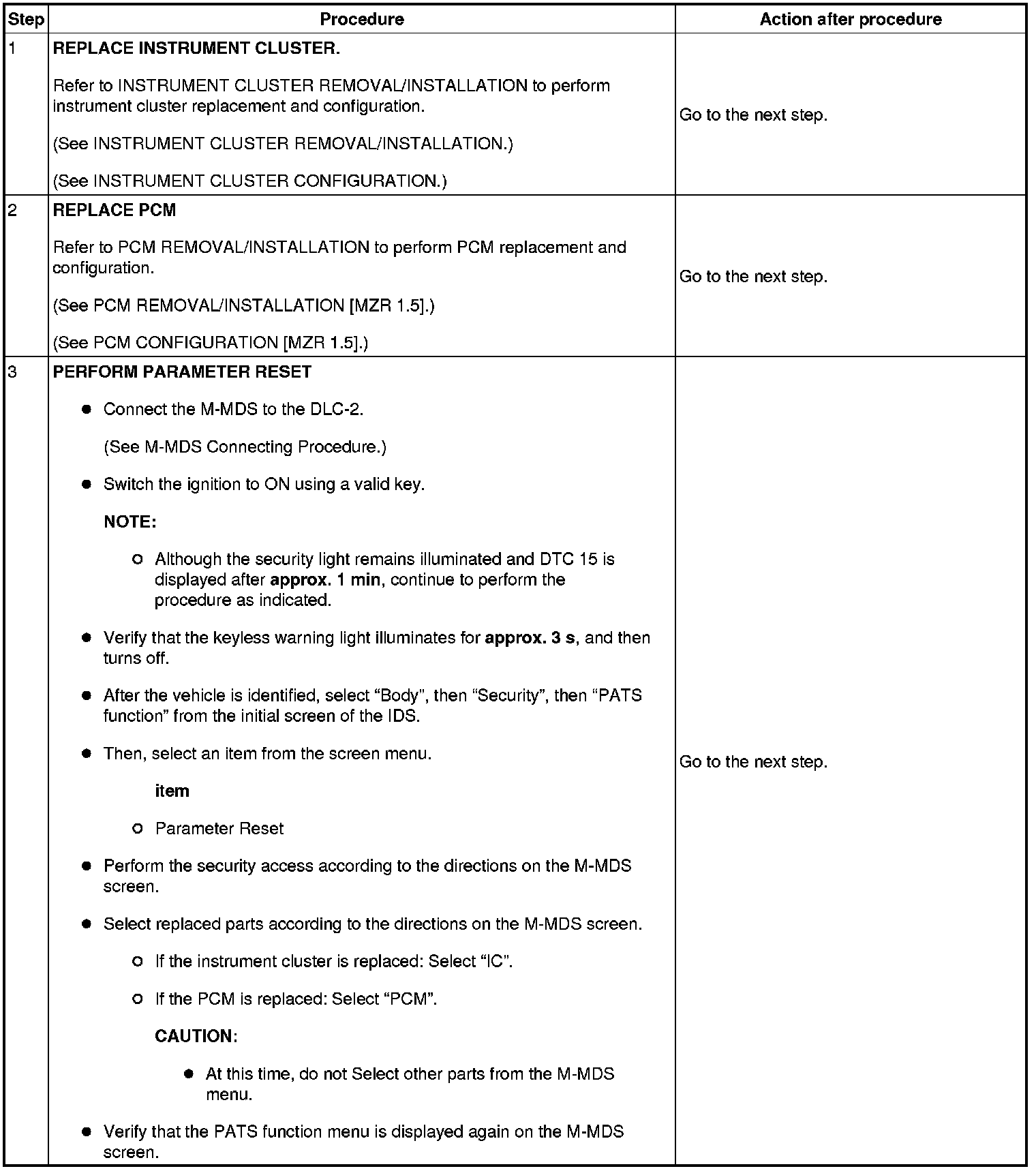 No.6 Programming Procedure Due to Simultaneous Replacement of Immobilizer System-related Parts (PCM and Instrument Cluster)