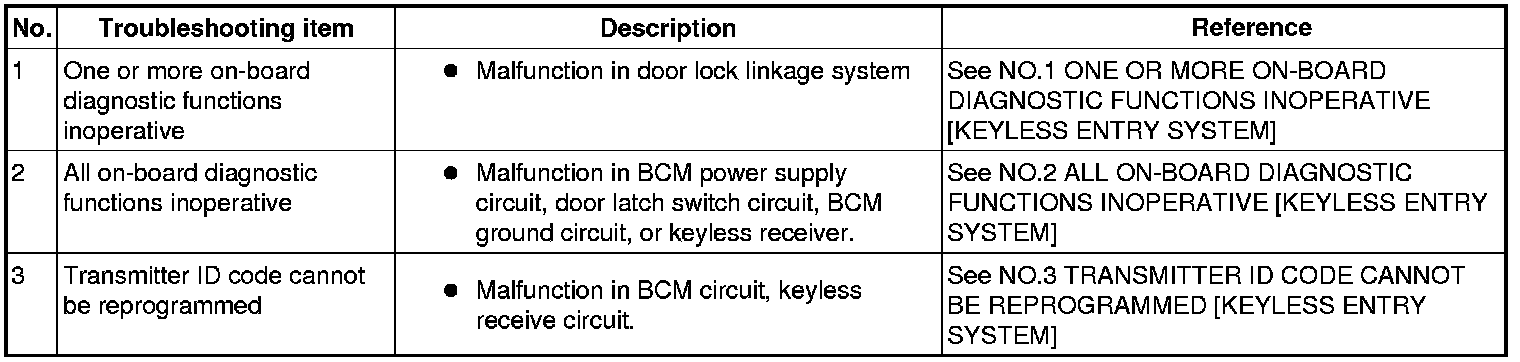 SYMPTOM TROUBLESHOOTING CHART [KEYLESS ENTRY SYSTEM]