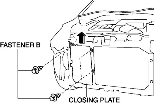 4. Remove fasteners B, then remove the closing plate in the direction of the arrow shown in the figure.