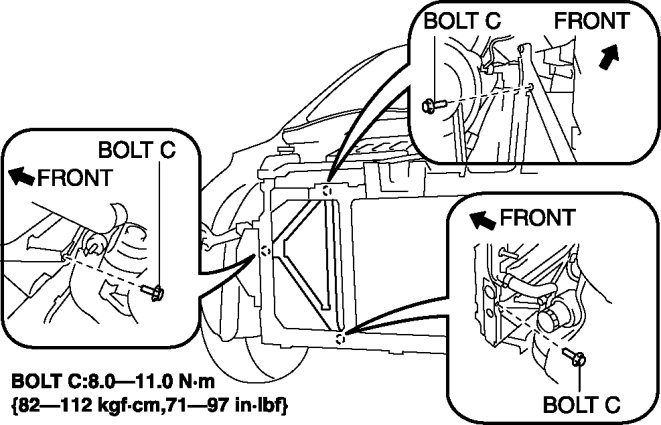 5. Remove bolts C, then set the shroud upper plate out of the way.