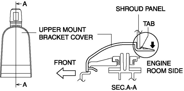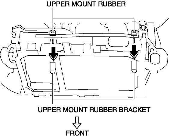 1. Remove the upper mount rubber bracket while pressing down the upper mount rubber bracket tab in the direction of the arrow in the figure.