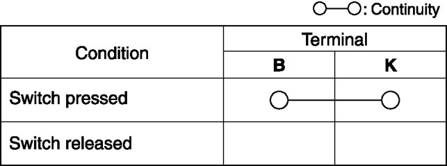 2. Verify that the continuity between the DSC OFF switch terminals is as indicated in the table.