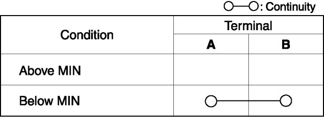 2. Inspect for continuity between the brake fluid level sensor terminals.