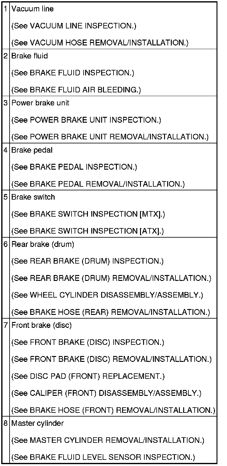 CONVENTIONAL BRAKE SYSTEM LOCATION INDEX