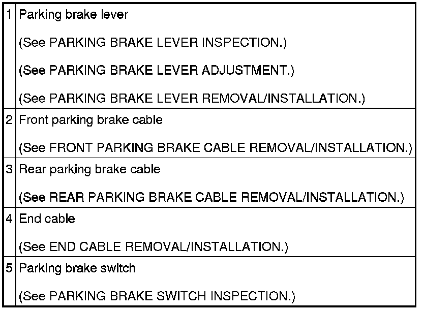 PARKING BRAKE SYSTEM LOCATION INDEX