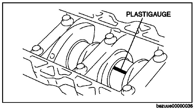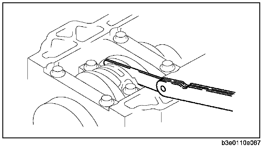 3. Measure the oil clearance at the large end of the connecting rod using a plastigauge.