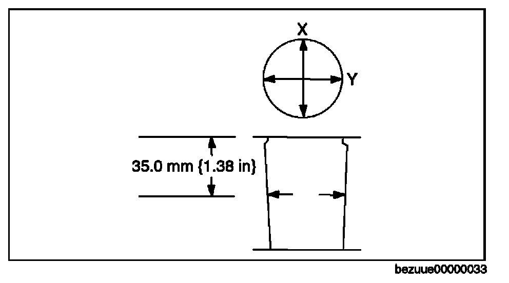 2. Measure the cylinder bore using a cylinder bore gauge. Measurement positions are in the X and Y directions at 35.0 mm {1.38 in} below the top surface of the cylinder.