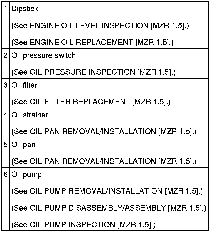 LUBRICATION SYSTEM LOCATION INDEX [MZR 1.5]