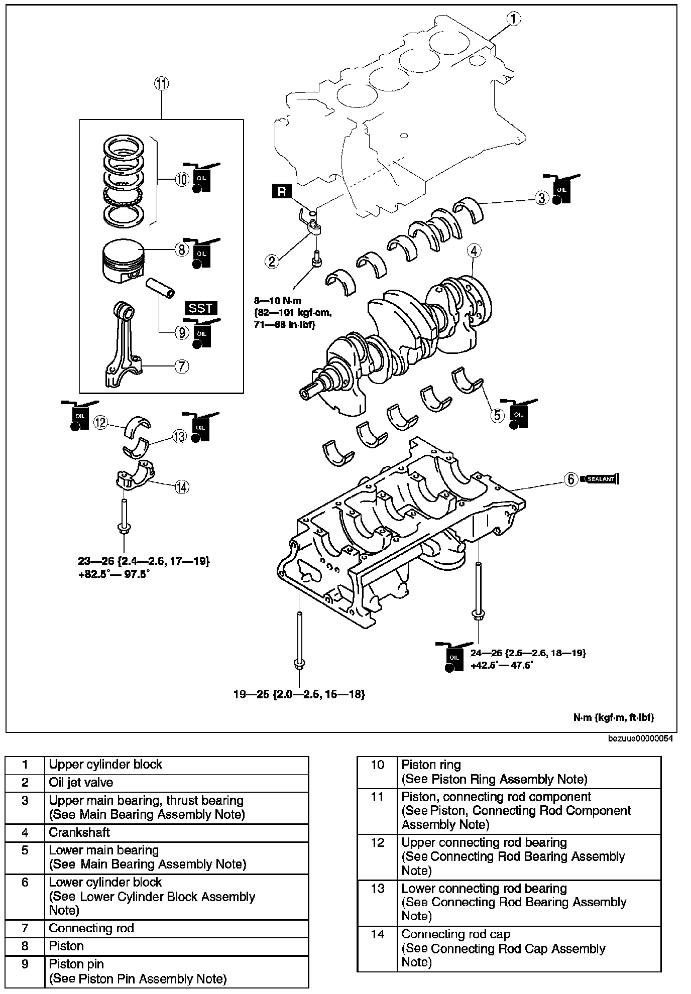 CYLINDER BLOCK ASSEMBLY (I)1. Assemble in the order indicated in the table.