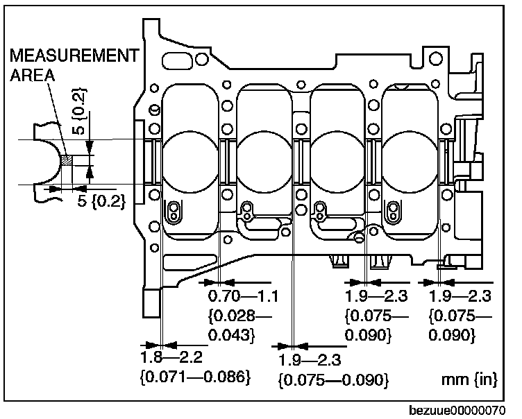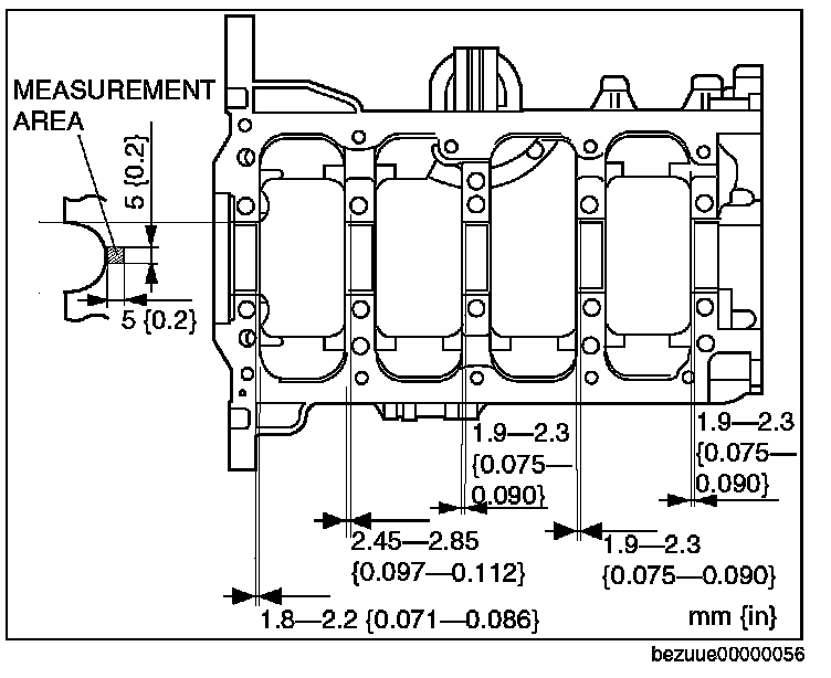 Caution: If the lower main bearing is not assembled according to the specification it could result in engine damage from seizure or burning of the bearing. Measure the bearing using a vernier caliper and assemble it within the specification.