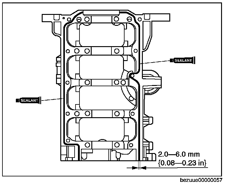 Caution: Install the lower cylinder block before the applied silicone sealant starts to harden.
