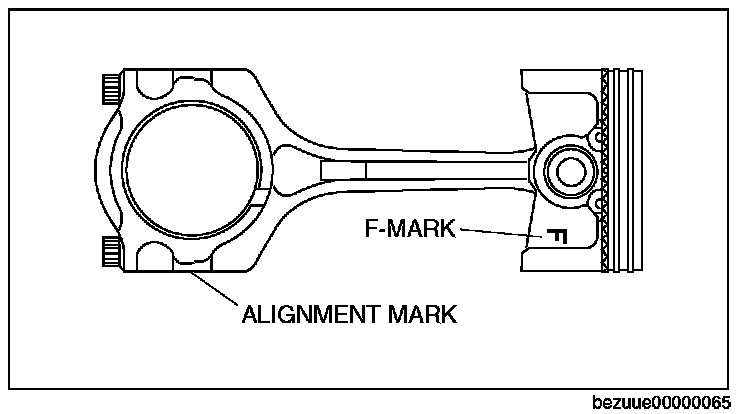 3. Point the end mark on the connecting rod and F- mark on the piston in the same direction as shown in the figure.