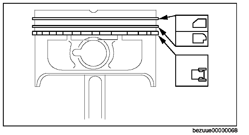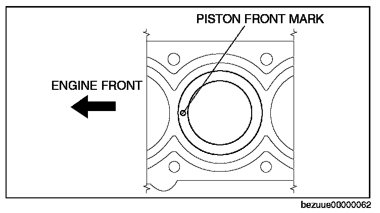 2. Insert the piston into the cylinder with the mark on top of the piston facing the front of the engine.