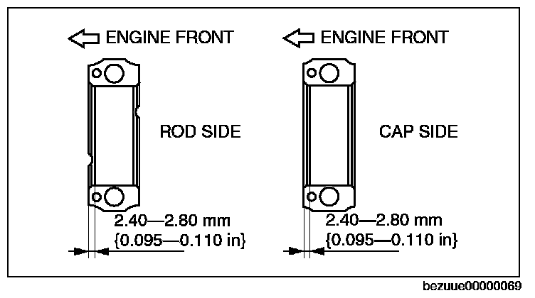 Caution: If the connecting rod bearing is not assembled according to the specification it could result in engine damage from seizure or burning of the bearing. Measure the bearing using a vernier caliper and install it within the specification.