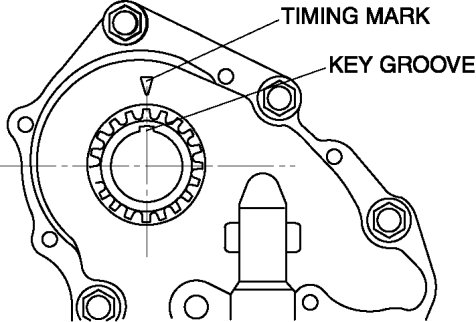 1. Rotate the crankshaft clockwise and align the key groove of the crankshaft sprocket to the timing mark, and then position the No.1 cylinder to TDC.