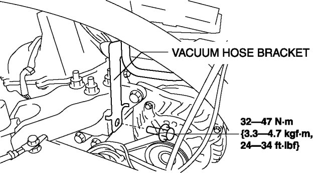 6. Remove the vacuum hose bracket installation bolt, then set the vacuum hose bracket out of the way.