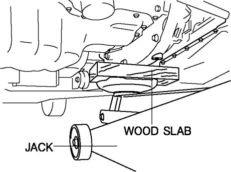 1. Support the clutch housing (MTX) or the converter housing (ATX) using a jack with a wood slab of appropriate size inserted to secure the housing.
