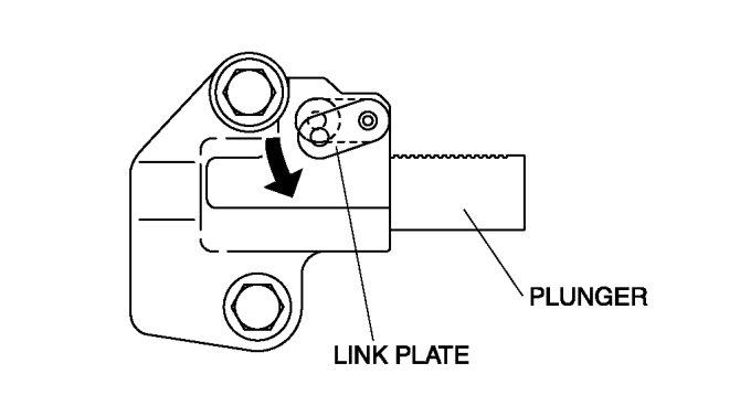 2. Push back the plunger slowly in the direction shown in the figure with the link plate still pushed down.