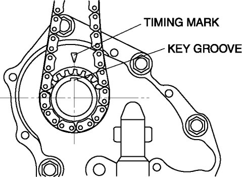 1. Align the key groove of the crank sprocket to the timing mark, and then position the No.1 cylinder to TDC.