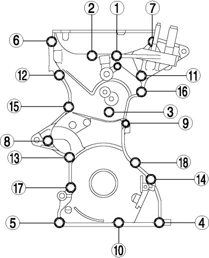 2. Tighten the engine front cover installation bolts in the order shown in the figure.