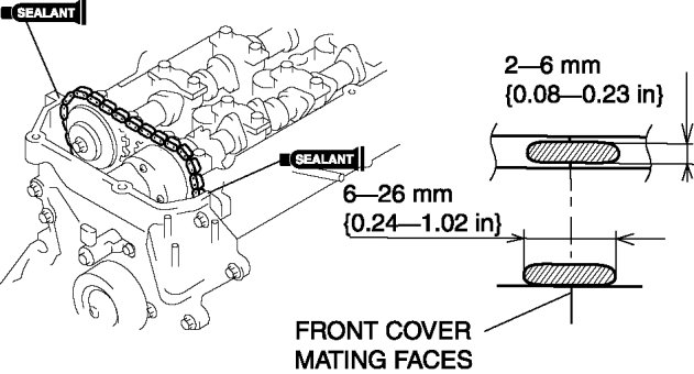 - Install the engine front cover before the applied silicone sealant starts to harden.