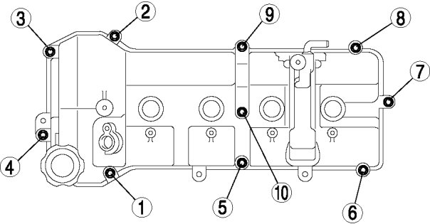 2. Tighten the cylinder head cover installation bolts in the order shown in the figure.