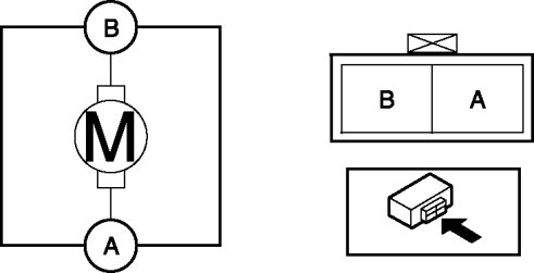 1. Connect battery positive voltage to terminal B and ground to terminal A of the blower motor and verify its operation.