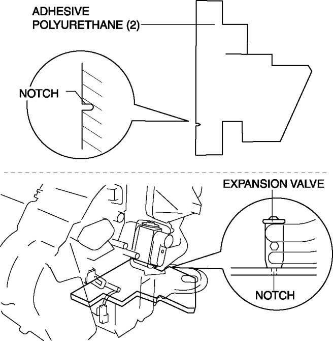4. Align the adhesive polyurethane (2) notch with the center of the lower surface of the expansion valve, and adhere.