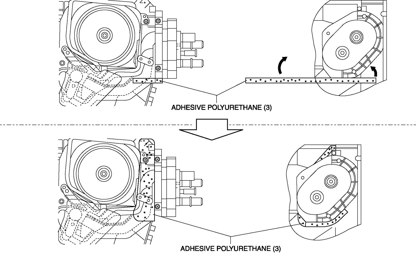 1. Attach the adhesive polyurethane (3) as shown in the figure.